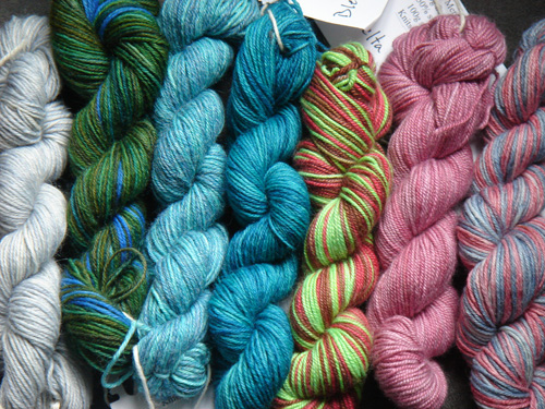 You are in for a treat - check out the Grrrl Shaped Yarns samples! Brooklynne Michelle hand paints luxury yarns, and once you've had a touch of these, you're going to be at her website before you know it buying more...