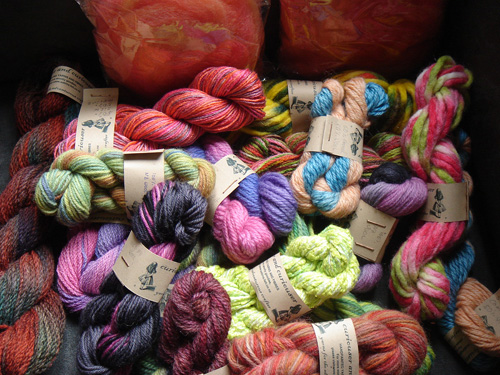 Wow, what an exciting box of goodies! There are so many beautiful samples, I don't know where to begin. Sabine from Curiouser and Curiouser makes yarns for the adventurous crafter, and of course any good crafter has a wide selection of yarns in their stash, so when you find that perfect pattern you must begin immediately, you are sure to have just the yarn for it.