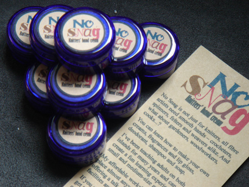 If you find your hands chapped, scalded, rough and sore – definitely not the smooth hands you need for knitting, crocheting, spinning - then No Snag Hand Cream is for you! Not just for knitters - all fibre artists need smooth hands. This wonderful cream is made by Sabine from Curiouser and Curiouser, and this is what she says about it: