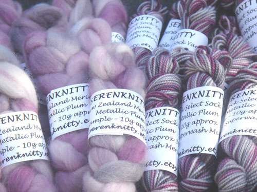 These are the absolutely gorgeous samples that Jane from Serenknitty has sent in for the next NZ Yarn Sampler Box - aren't the colours just beautiful? The shade is Metallic Plum - I just love it! I really must try my hand at spinning so I can see what happens with the fibre.